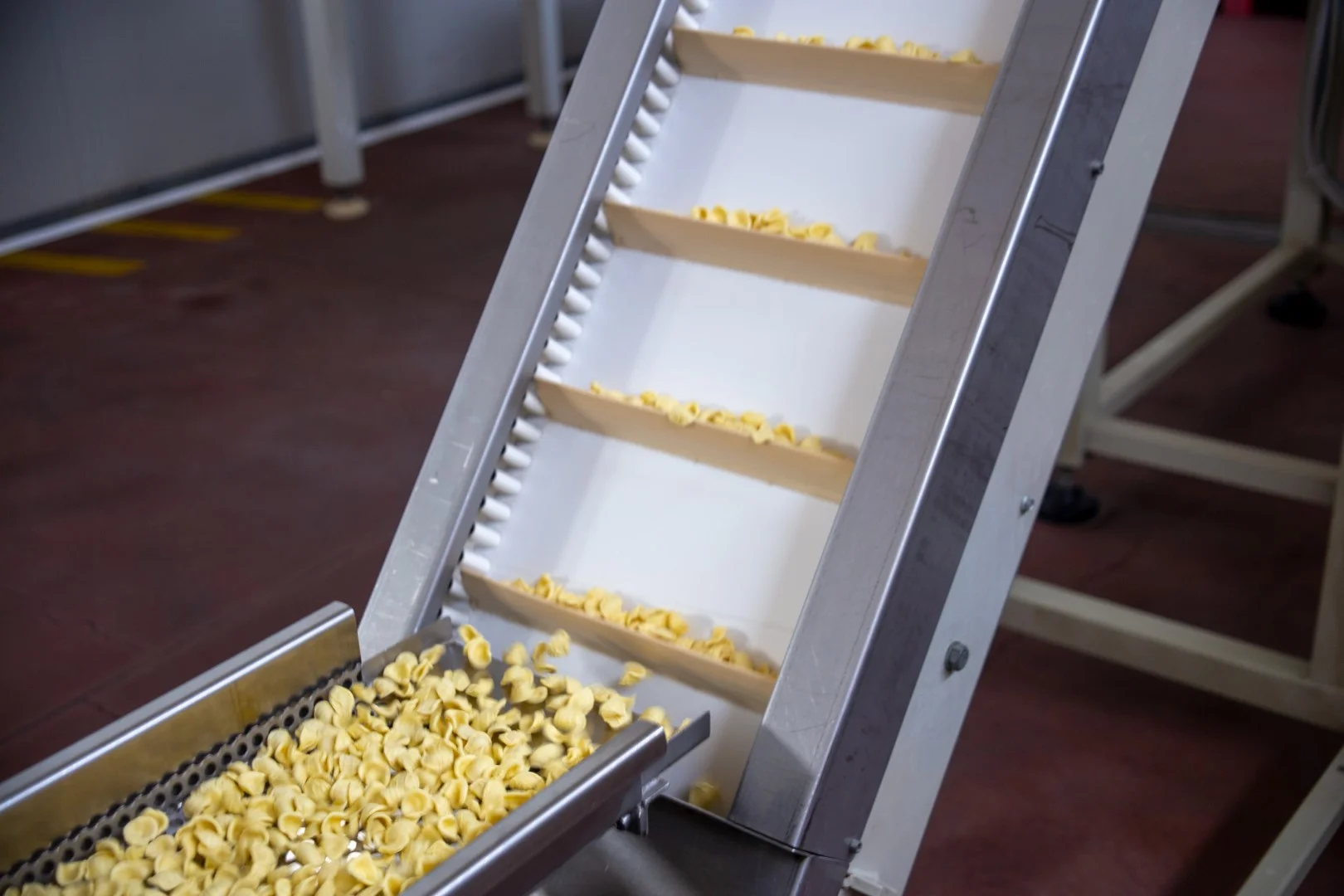 After shaping the pasta, it is dried at low temperatures. The drying is the most crucial phase in the pasta making process. In general, the slower the pasta is dried, the better the result will be. This is where the difference is made between small-scale production and large industrialized production. Mass producers will dry as quickly as possible for efficiency. For the Carolis this is never an option because quality is important.