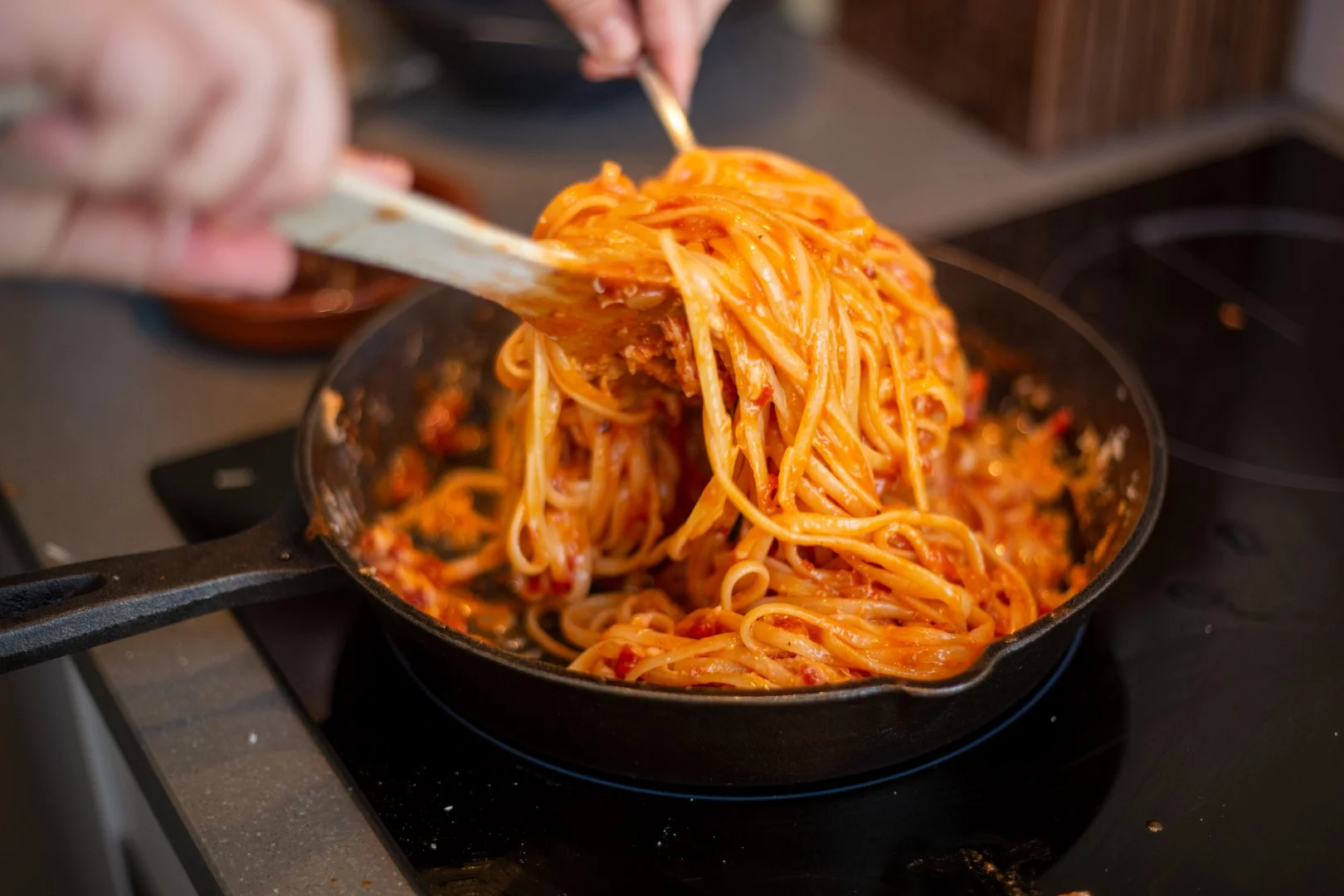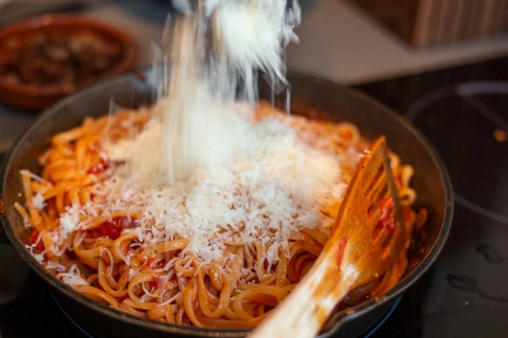 The history of pasta all'Amatriciana dates back to the 18th century. Originally in the region, the classic Italian recipe pasta alla Gricia was consumed. It was a hearty meal for shepherds who had to walk long distances all day, made from the cheese of their sheep (pecorino) and guanciale (pork jowl). In the 18th century, tomatoes brought from America quickly gained popularity in the region around Naples. Eventually, this new crop also reached Amatrice, and people began to enrich the recipe of alla Grigia with tomatoes. Pasta all’Amatriciana was born.