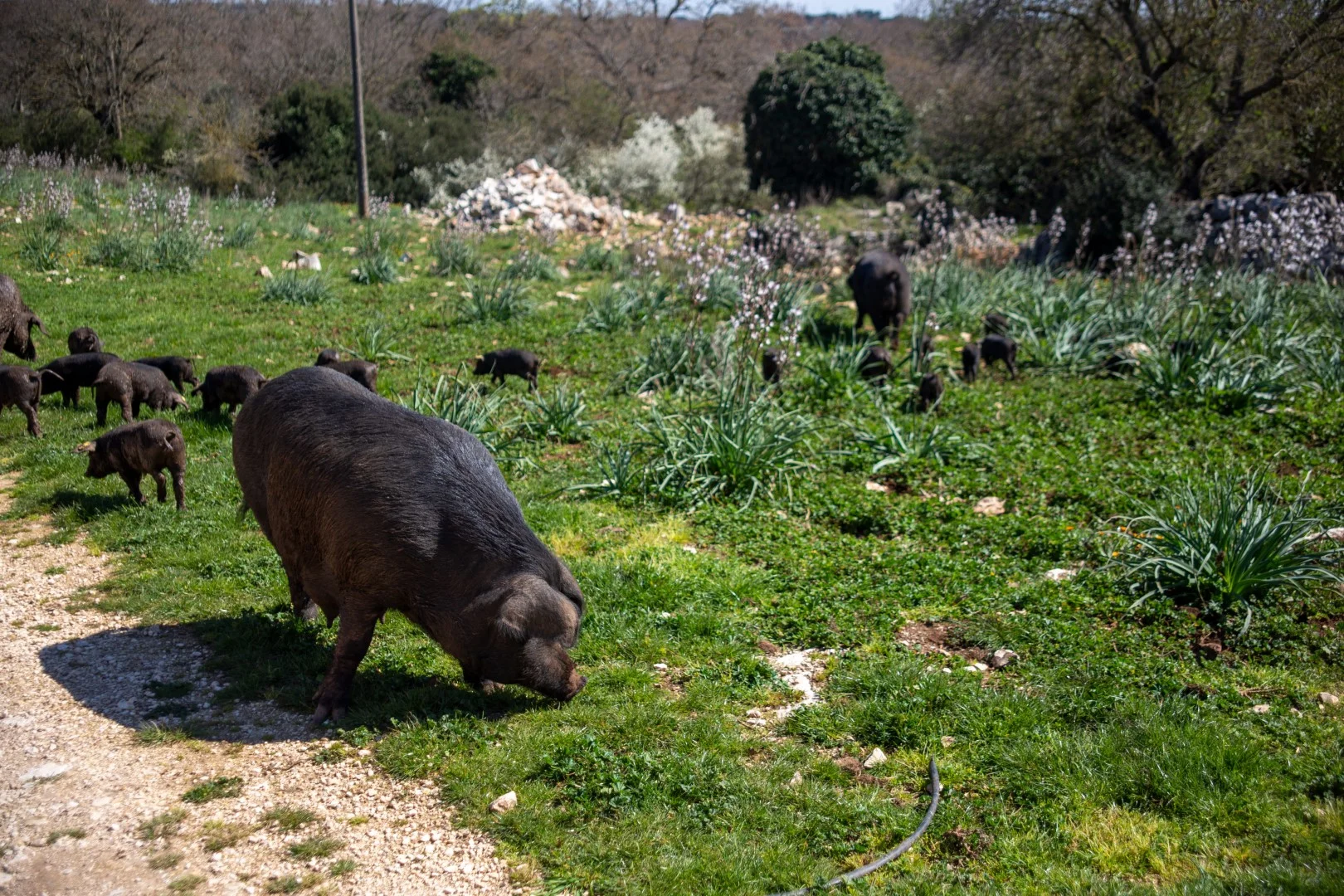 De Caroli's doen alles met extra aandacht en oog voor kwaliteit, dierenwelzijn en biodiversiteit. Er wordt zorgvuldig met de hand gewerkt onder toeziend oog van de patriarch van de familie, Stefano Caroli. Alleen varkens met een goed leven, die alle ruimte hadden om zich te bewegen tussen de olijfbomen van de Valle d'Itria vallei, worden gebruikt. Daarom zijn de Caroli's onderdeel van de Italiaanse Slow Food beweging. De snippers van eikenschors en amandelschil zorgen voor een aangename, maar niet alles-doordringende rooksmaak. Tot slot wordt de guanciale nog vier tot vijf maanden gedroogd. Allesbehalve alledaagse guanciale dus. Als je bij ons een stuk guanciale koopt, koop je niet alleen voor een hele goede prijs, het is ook nog eens de allerbeste kwaliteit!