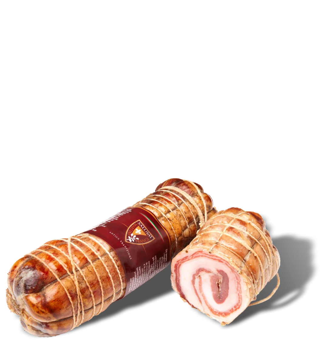 Het hele stuk pancetta wordt eerst ingewreven met zout en zwarte peper. Hierna wordt het vlees een paar dagen gemarineerd in gekookte wijn en kruiden. Nadat het is uitgelekt en een beetje gedroogd, wordt het opgerold, opgeknoopt en gerookt. De snippers van eikenschors en amandelschil zorgen voor een aangename, maar niet alles-doordringende rooksmaak. En ten slotte wordt de pancetta nog vier maanden gedroogd.