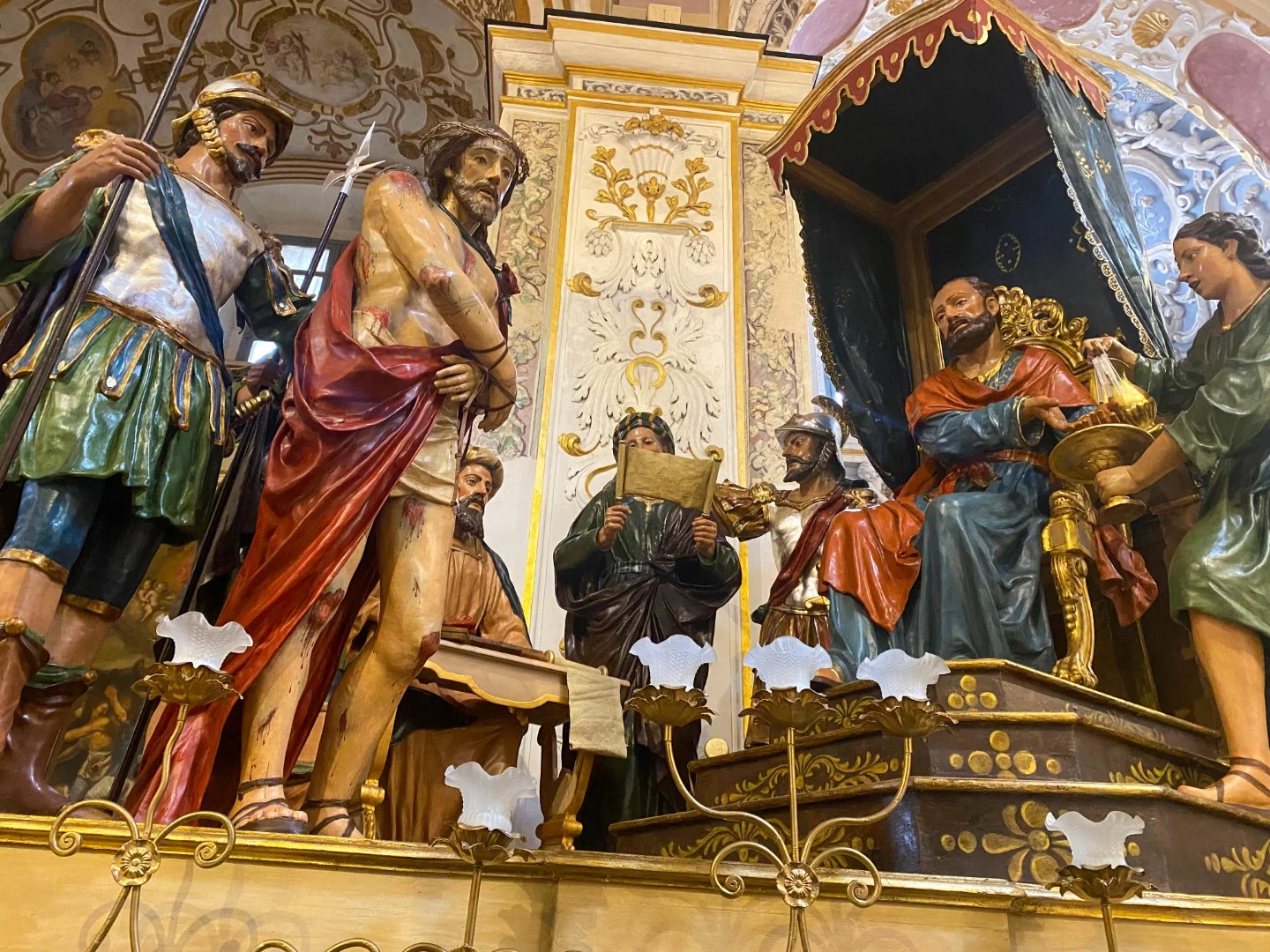 Op woensdag ontmoetten we Pascal, een in Parijs opgegroeide Italiaan van een Pugliese vader en een Siciliaanse moeder. Na de eerste 30 jaar van zijn leven in Parijs te hebben doorgebracht trok naar eigen zeggen Sicilië te veel aan hem en ging hij wonen tegenover het ouderlijk huis van zijn moeder. Hij nam ons mee in de historie van de paastraditie in Caltanissetta en ‘s avonds gingen we met hem mee naar de processie met de kleine wagens. Door de regen bleek deze helaas niet door te gaan, maar het resultaat was misschien wel extra bijzonder. De gehele processie verzamelde zich in de kathedraal om te schuilen én vooral om muziek te maken.